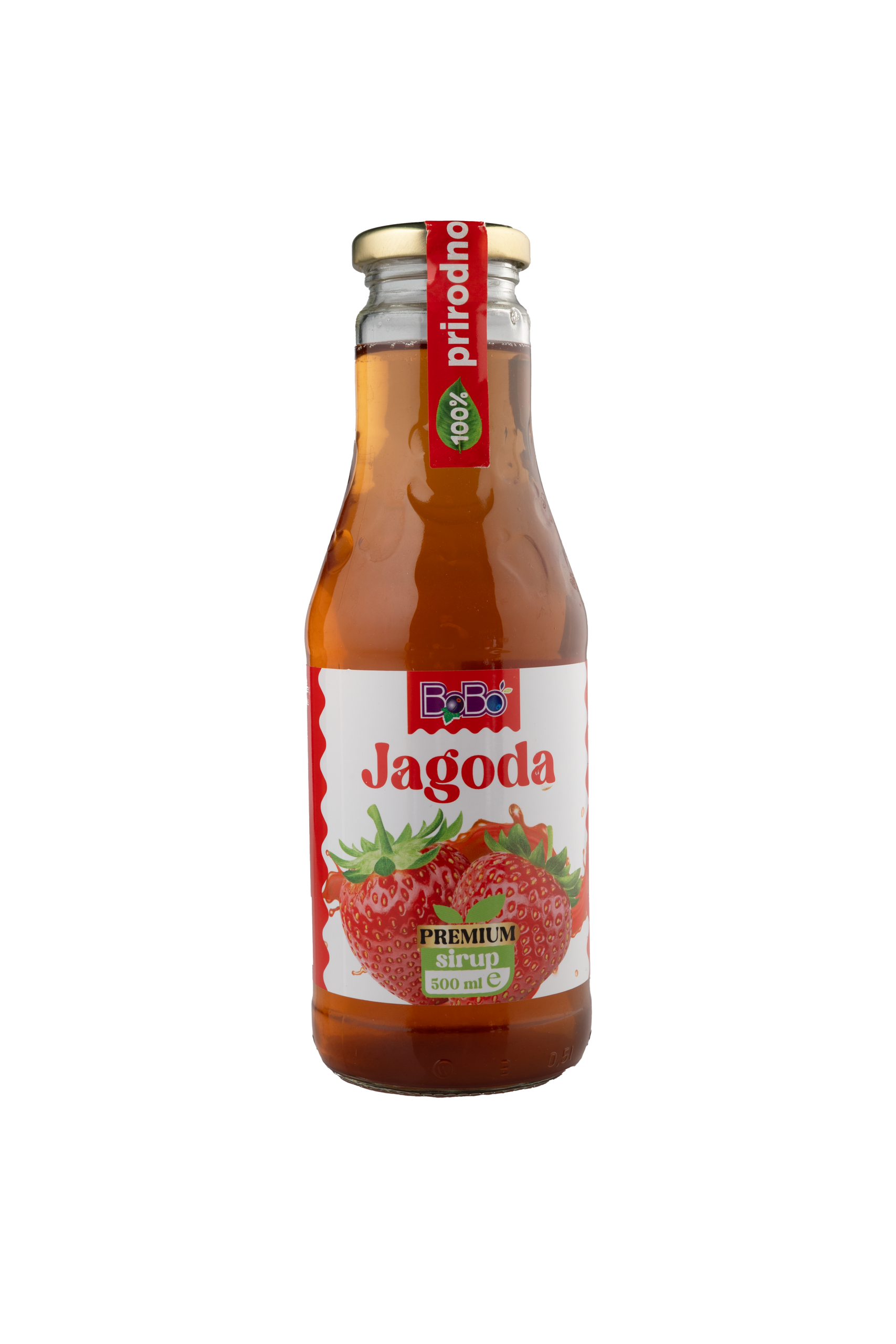 Sirup od ekološki uzgojenih jagoda. Sastav: sok od jagode , lim.kiselina, šećer i voda. Pasteriziran, bez konzervansa i umjetnih bojila. Jagode su odličan izvor folata i vitamina C, a sadrže i biljne fenole koji zajedno s antioksidansima, smanjuju rizik od karcinoma i srčanih oboljenja.