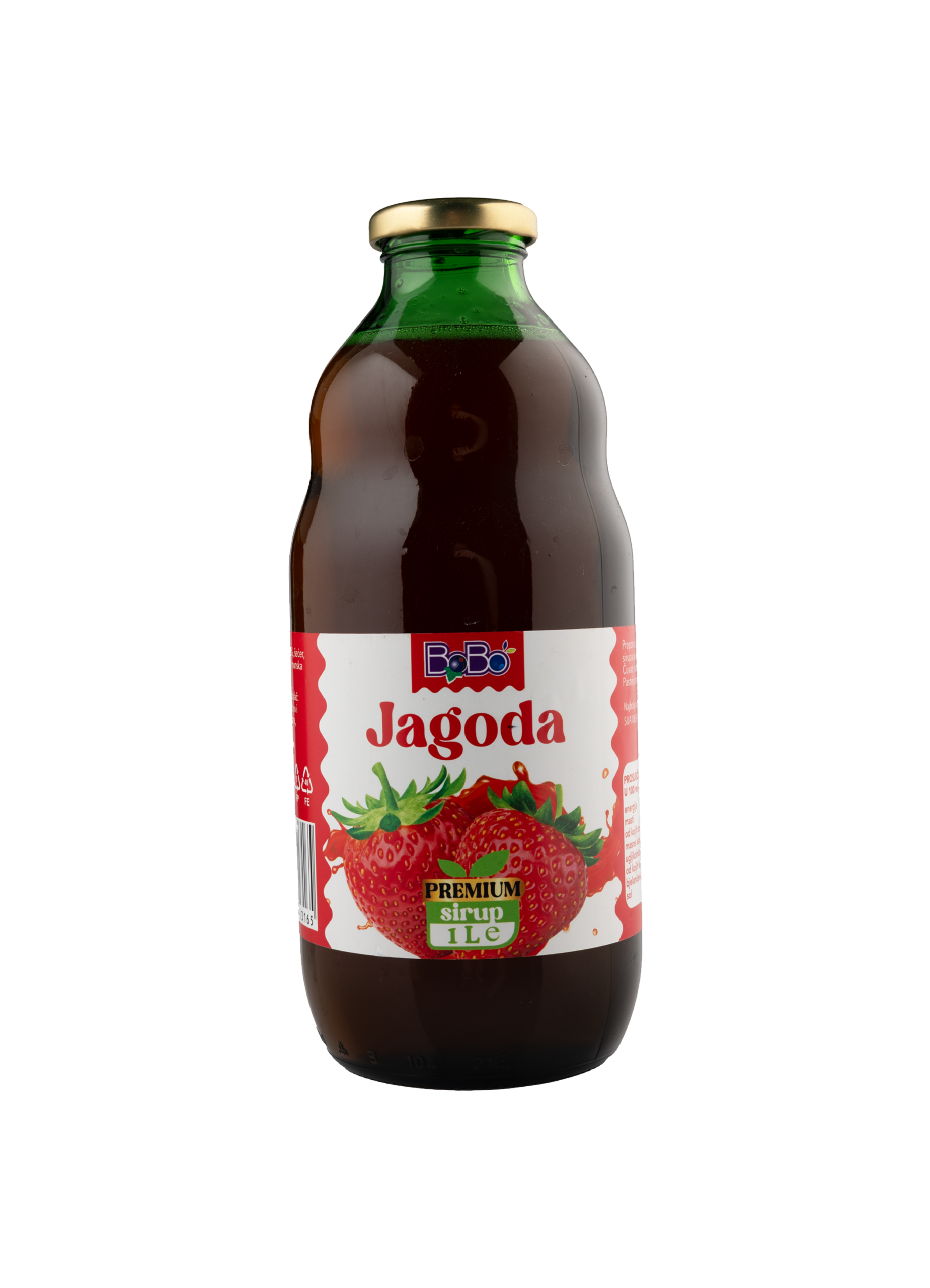 Sirup od  ekološki uzgojenih jagoda. Sastav: sok od jagode , lim.kiselina, šećer i voda. Pasteriziran, bez konzervansa i umjetnih bojila. Jagode su odličan izvor folata i vitamina C, a sadrže i biljne fenole koji zajedno s antioksidansima, smanjuju rizik od karcinoma i srčanih oboljenja.