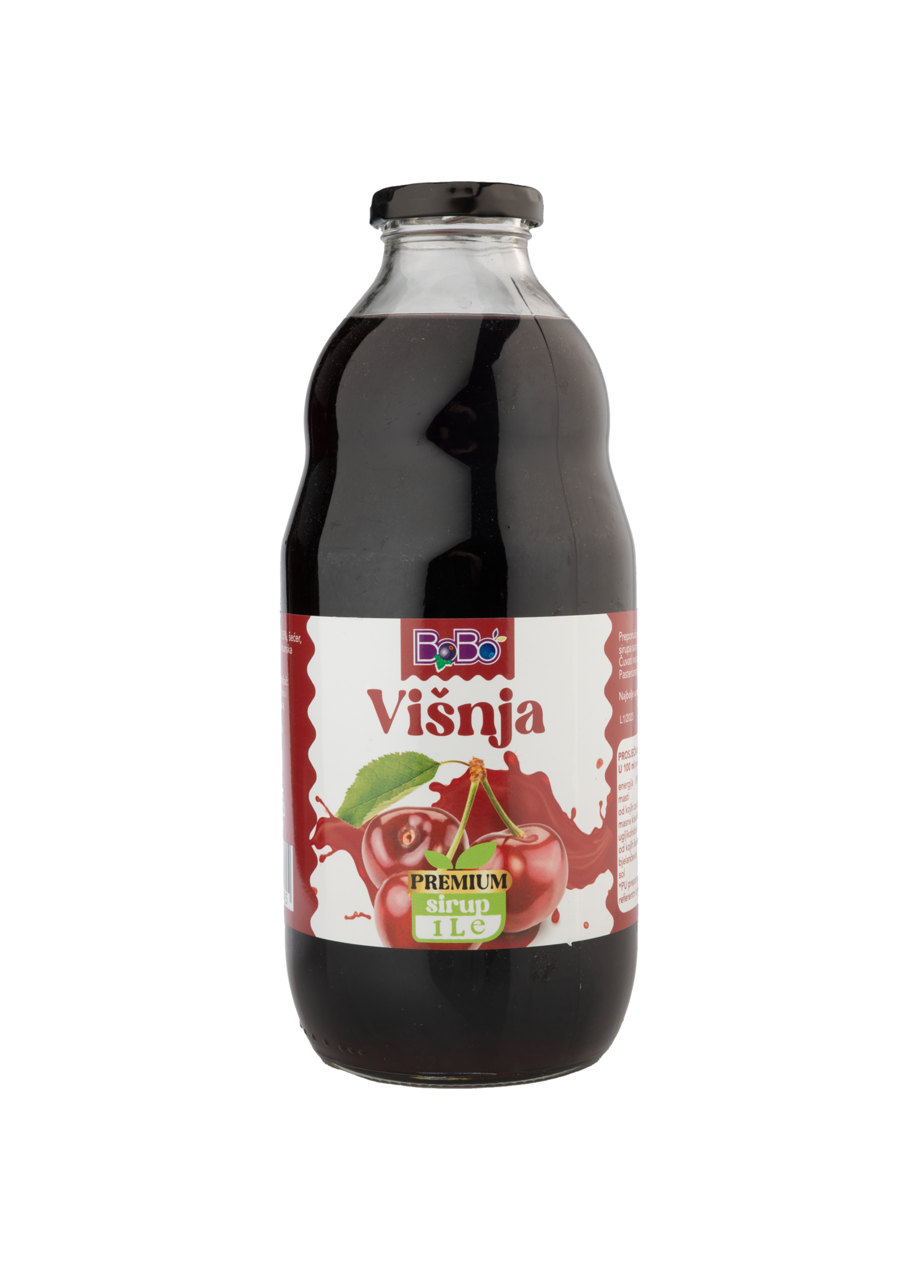 Sirup od višnje. Sastav: sok višnje, lim.kiselina, šećer i voda. Pasteriziran, bez konzervansa i umjetnih bojila. Višnje su poznate po svojim brojnim ljekovitim svojstvima i antioksidativnom djelovanju. Bogate su vitaminima A, C, E i folnom kiselinom, mineralima kalijem, magnezijem, željezom i vlaknima.Višnja sadrži fenole, galičnu i p-kumarinsku kiselinu, kemferol i kvercetin.Ljekovita svojstva višnje: hrani i štiti mozak, smanjuje rizik od dijabetesa, pomaže kod bubrežnih smetnji, pogoduje probavnom sustavu, potpomaže mršavljenju, poboljšava san, smanjuje rizik od srčanih bolesti i  pomaže kod upala mokraćnih kanala.