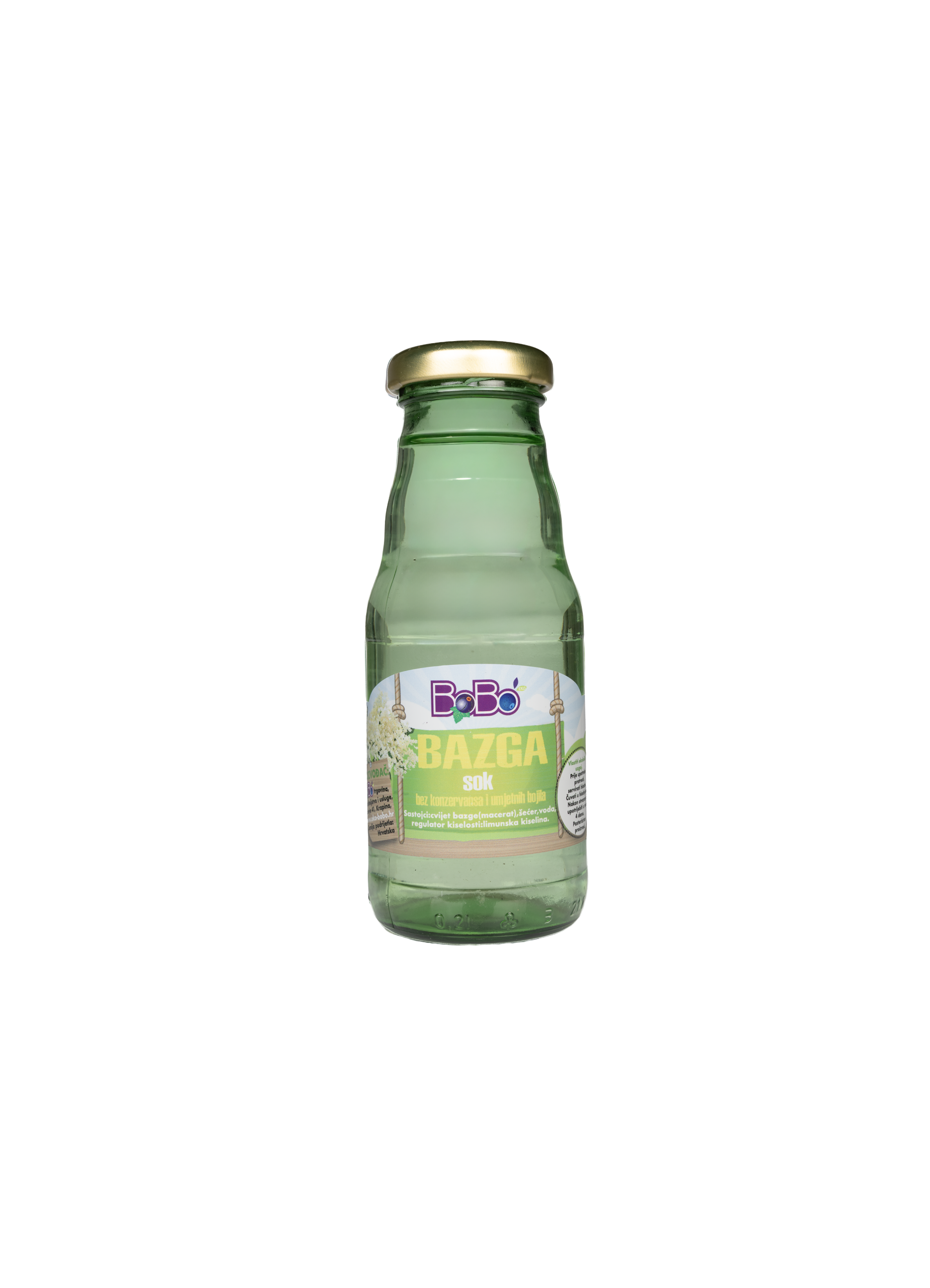 Sok napravljen maceracijom cvjetova eko bazge. Sastav: bazga, lim.kiselina, šećer i voda. Pasteriziran, bez konzervansa i umjetnih bojila. Bazga poboljšava funkciju bubrega i odstranjuje nagomilanu vodu u organizmu. Koristi se kod liječenja vodene bolesti te reumatizma mišića i zglobova. Sok od bazge dobar je lijek za prehladu, kašalj, hripavac, gripu, bronhitis, početni stadij upale pluća, hunjavicu, reumatske bolesti…