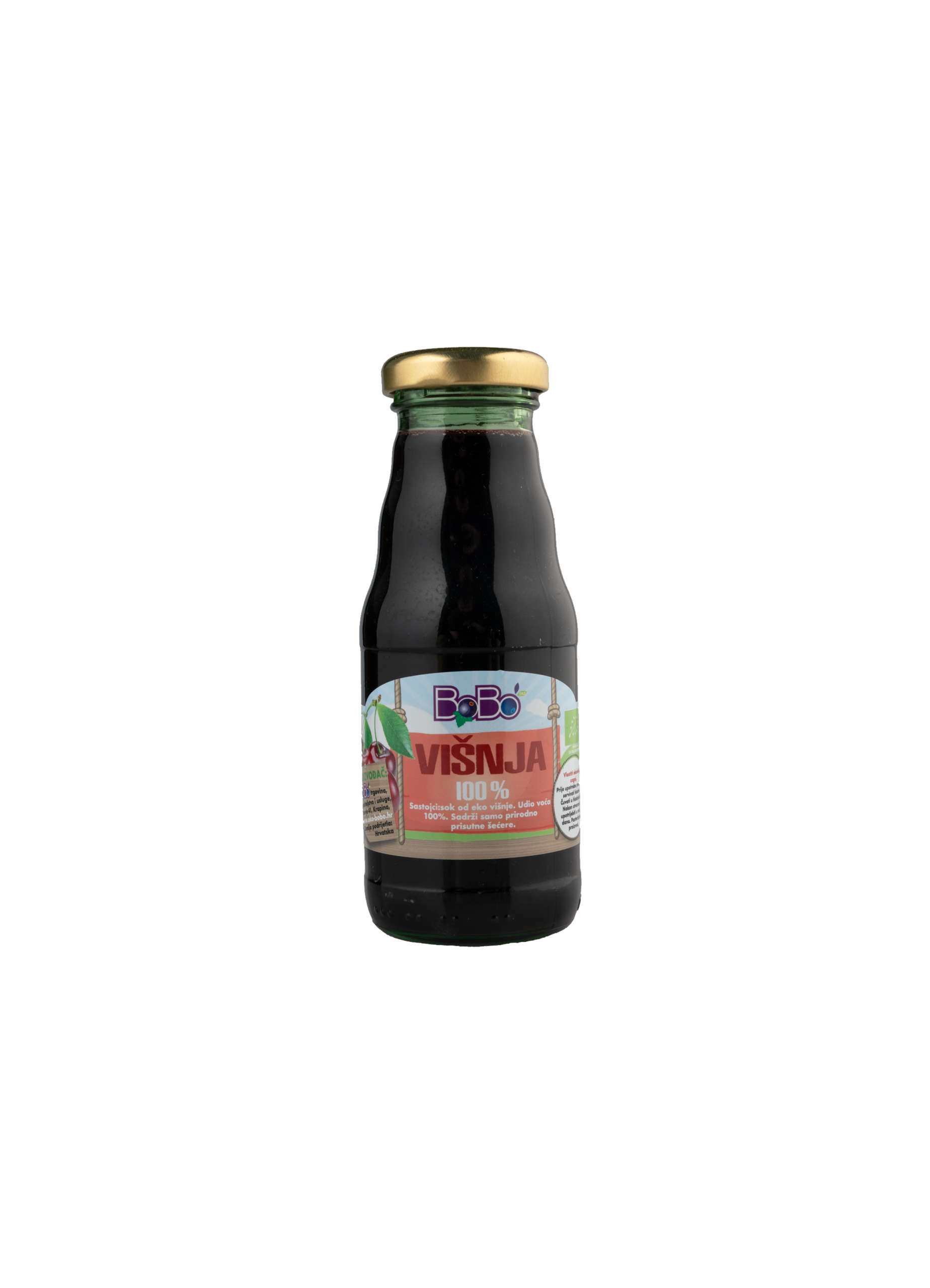 Sok dobiven cijeđenjem ekološki uzgojenih višnji. Sastav: sok višnja 100%. Sadrži samo prirodno prisutne šećere, bez umjetnih boja, aditiva i konzervansa. Višnje su poznate po svojim brojnim ljekovitim svojstvima i antioksidativnom djelovanju. Bogate su vitaminima A, C, E i folnom kiselinom, mineralima kalijem, magnezijem, željezom i vlaknima.Višnja sadrži fenole, galičnu i p-kumarinsku kiselinu, kemferol i kvercetin.Ljekovita svojstva višnje: hrani i štiti mozak, smanjuje rizik od dijabetesa, pomaže kod bubrežnih smetnji, pogoduje probavnom sustavu, potpomaže mršavljenju, poboljšava san, smanjuje rizik od srčanih bolesti i pomaže kod upala mokraćnih kanala.